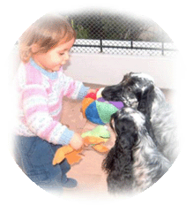 Son extremadamente pacientes y compañeros de los niños, particularmente los de la variedad particolor, pero no debemos olvidar nunca que no son juguetes, así que hay que impedir que los pequeños abusen de su bondadoso temperamento.