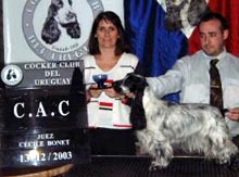 Exposiciones Cocker Club del Uruguay "Dr.Roberto Torres" Fecha: 13.12.03 Ejemplares en catálogo: 42 Resultados Juez: Sra.Cecile Bonet (McDewitt-Uruguay) Mejor de Exposición, mejor Joven y CJCU: J.Ch.Puck´s Blue Moonlight Lucy (Ch.A One´s Fat Boy Slim x Gr.Ch. Puck´s Blue Wait Up For You) Exp.: Gonzalo Ferreira