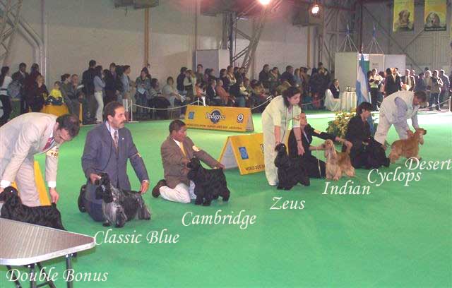 Campeones machos/Champion dogs: 1st CGC Br.Ch. Arcano's Duel at Gibraltar (Multi.Ch.Lynwater Duel at Dawn x Cocktail Ibiza) 2nd. Ur.Esp.Port.Ch.Bitcon Copywrite (Sh.Ch.Bitcon Troubador x Bitcon Dream Believer ) 3rd. Ch.Mayfair Eightsome Reel ( Arg.Ch.Gloucester's The Great Gamble x Lynwater High Noon)