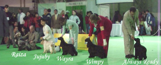 Campeonas hembras/Champion bitches(6): 1st.Puck's Blue Raiza (Gr.Ch.Lynwater Sea Chance x Gr.Ch.Puck's Blue Wait Up For You) 2nd. Summerland Always Ready (Summerland Bugsy x Summerland Be Happy) 3rd. Wayra de Rucalemu ( Multi.Ch.Top Hyghlands Look Who I am x Gr.Ch. Malloy de Babushka) 4th.Summerland Wimpy (Summerland Bugsy x Gr.Ch.Summerland Wu) Royal Fashion Jujuby Orange (Spider's Penelope's Teebone x Samantha of Royal Fashion) Fine Flair's Margot ( Wendy Dakota x Mi Jean's Lana Turner)